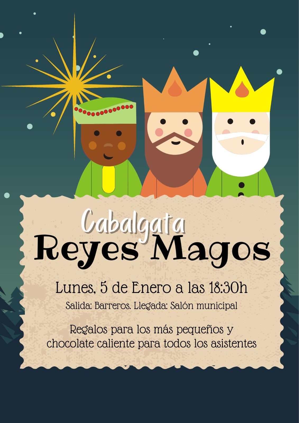 Sus Majestades los Reyes Magos recorrerán nuestras calles para llenar la tarde de ilusión, sonrisas y sorpresas.