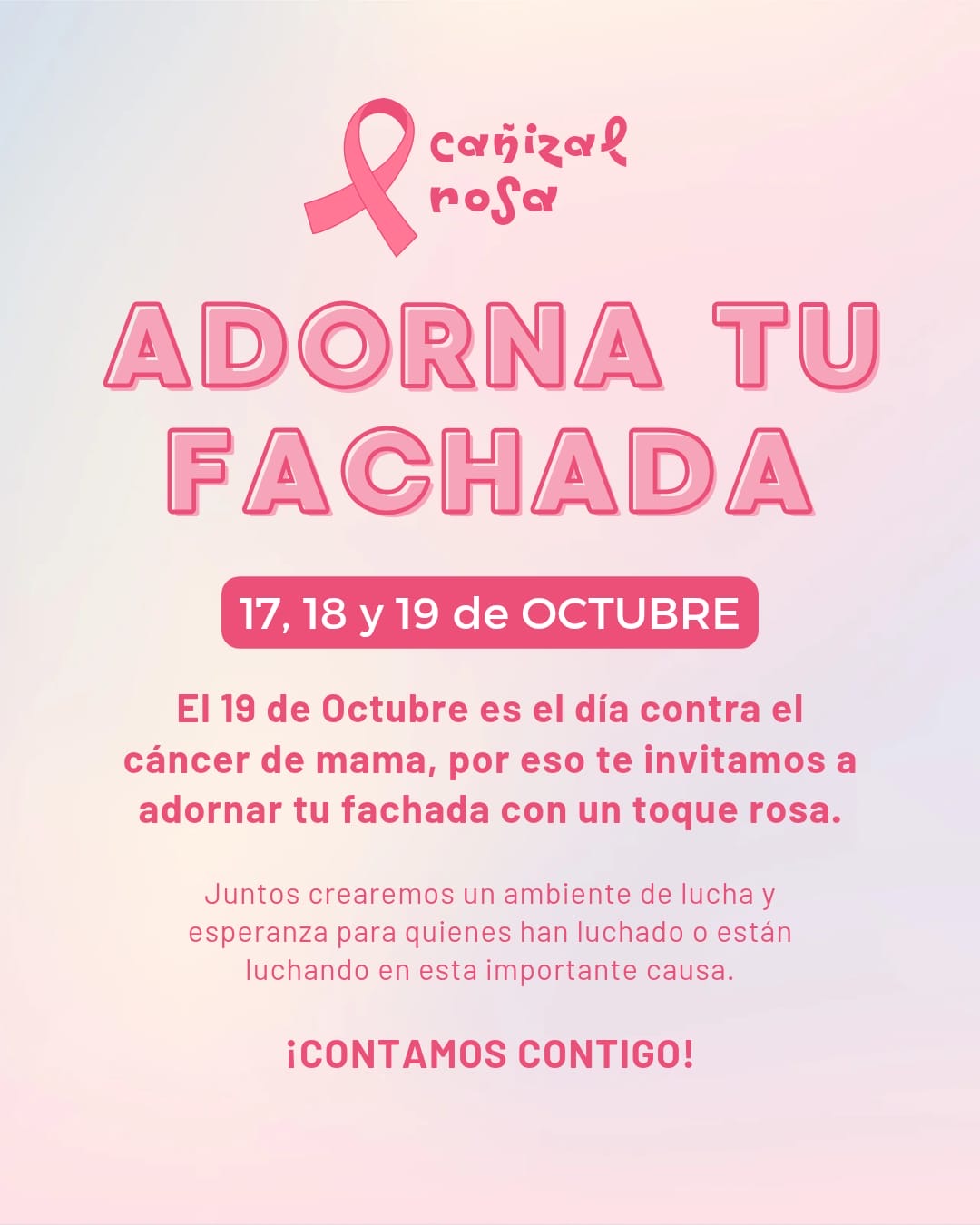 ¡Este 17, 18 y 19 de Octubre te invitamos a decorar tu fachada con un toque rosa por el día mundial contra el cáncer de mama! Juntos, todo el pueblo de Cañizal, brindaremos aliento y esperanza a quienes lo necesitan.